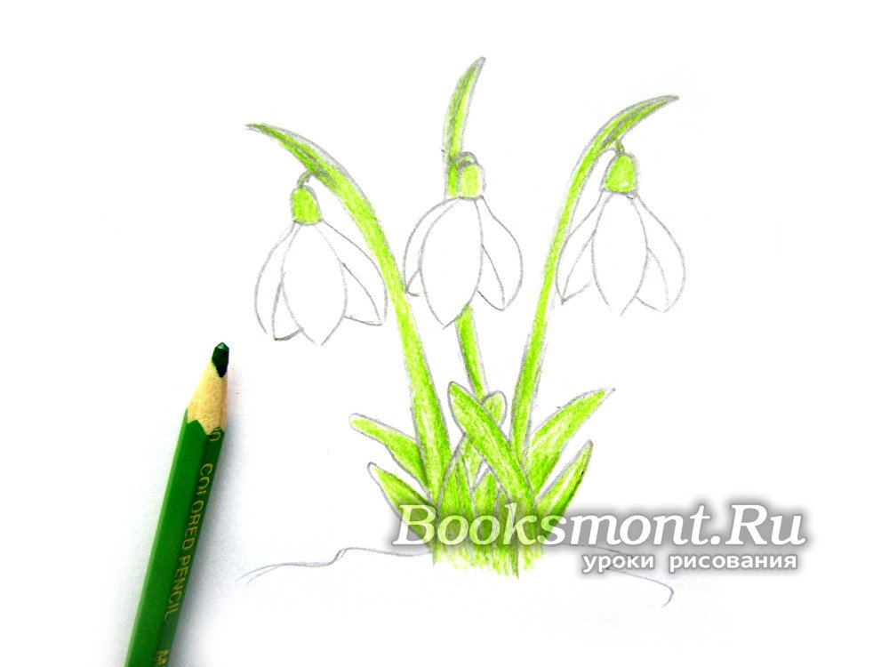 ![Нарисовать Подснежник карандашом поэтапно для детей]()