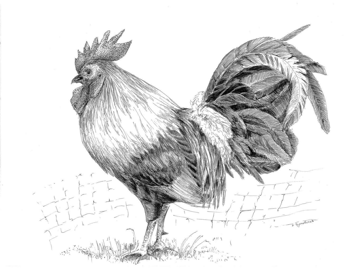 ![Петух карандашом]()