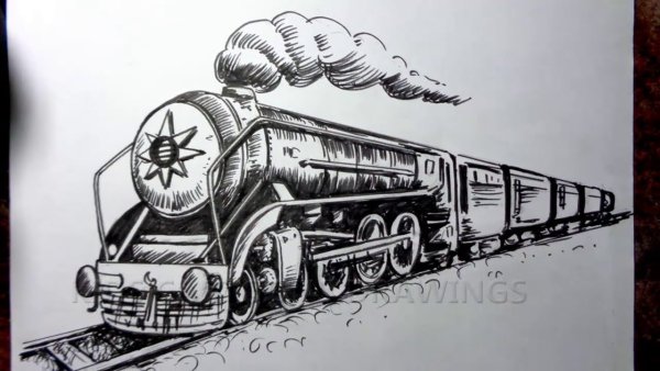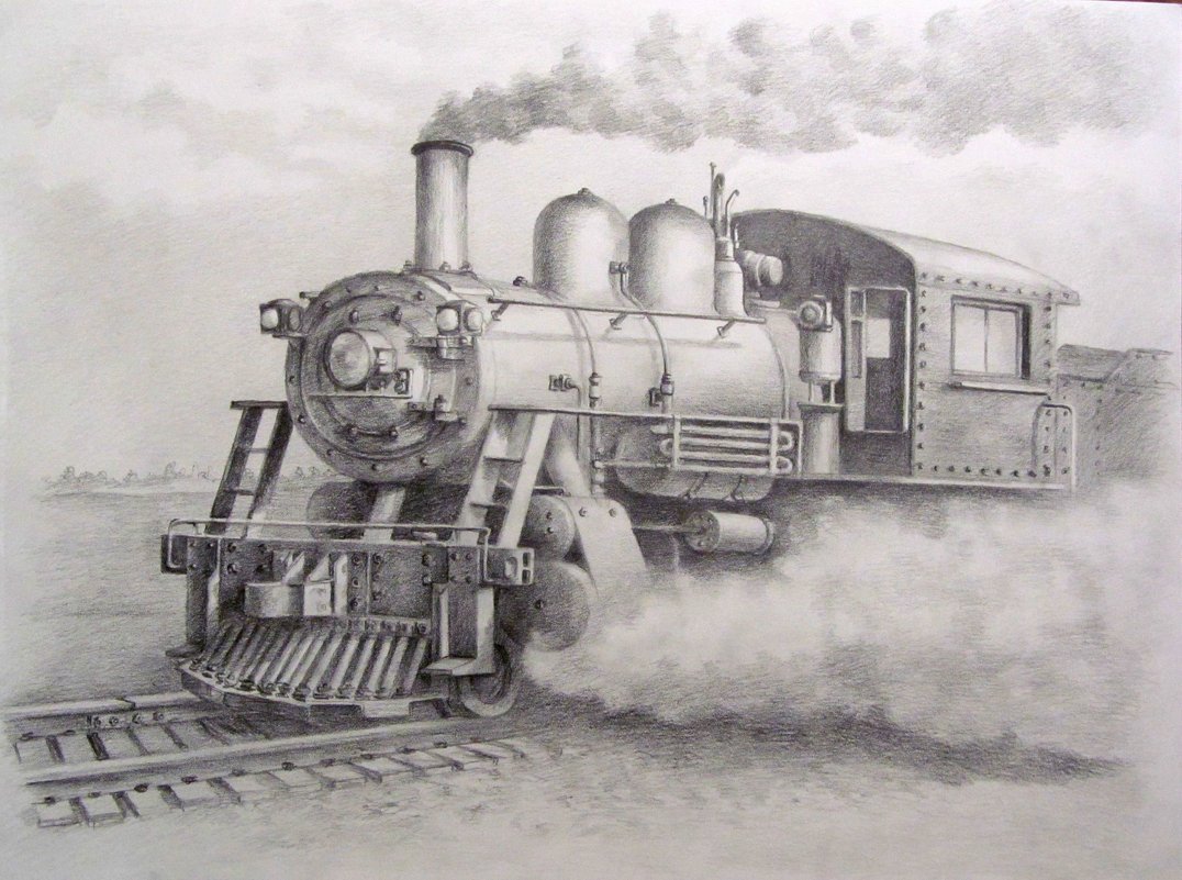 ![Паровоз арт карандаш]()