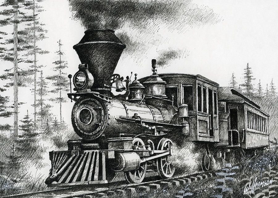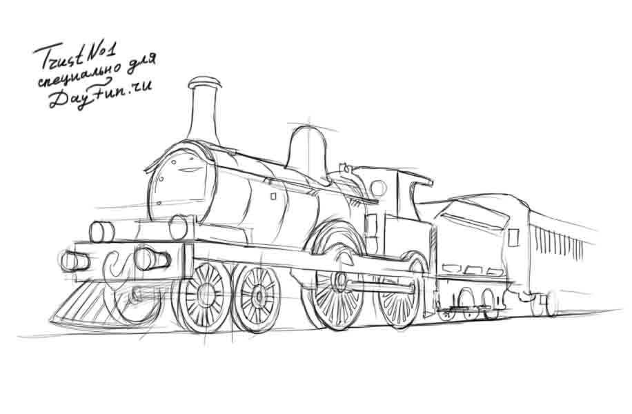 Паровоз рисунок карандашом
