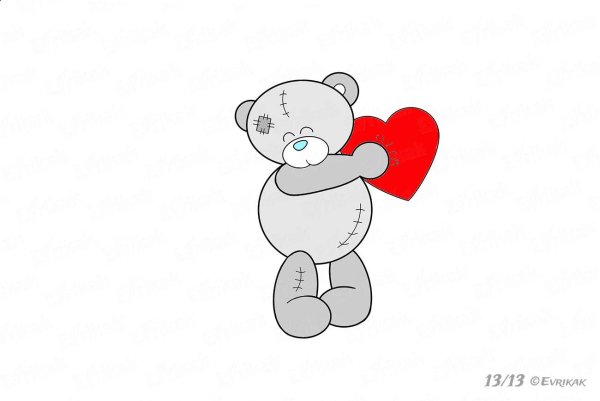 ![Мишка с сердечком для срисовки]()