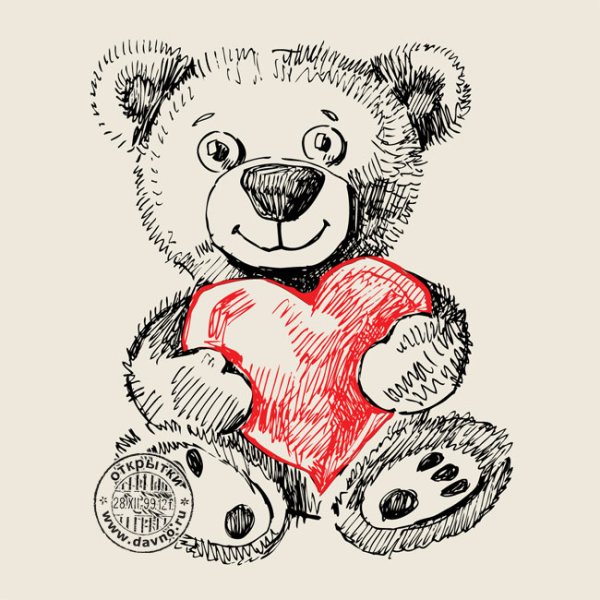 ![Мишка Тедди карандашом с сердечком]()