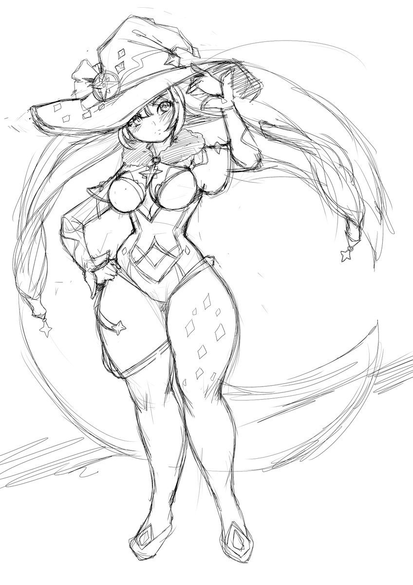 ![Мона скетч Геншин]()