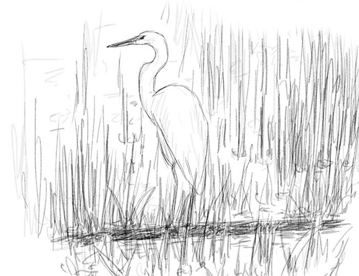 Рисунок болота карандашом