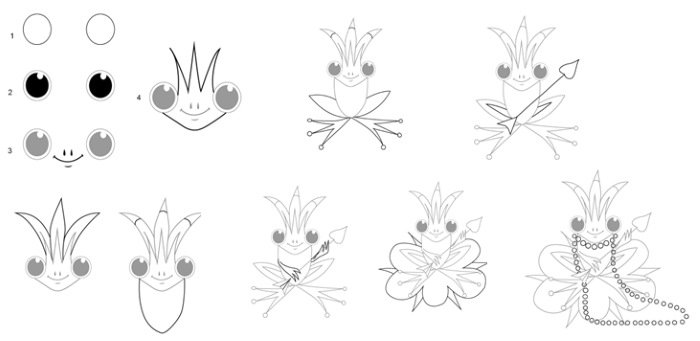 Рисование царевны лягушки поэтапно для детей