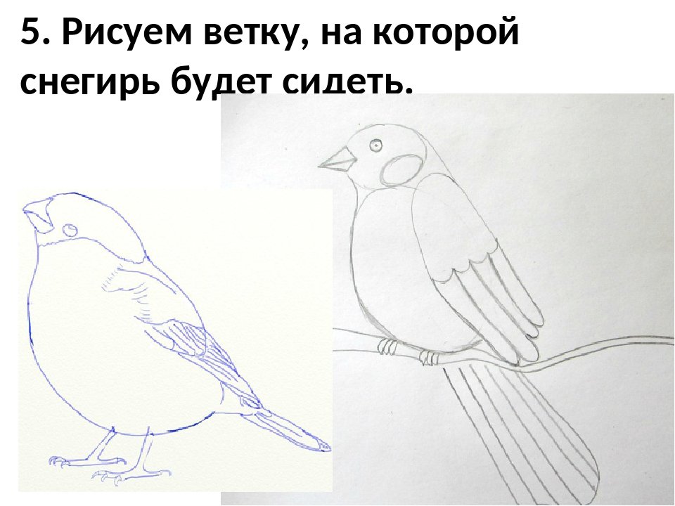 ![Снегирь рисунок для детей карандашом]()