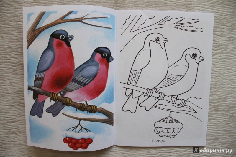 ![Зимующие птицы раскраска Снегирь]()