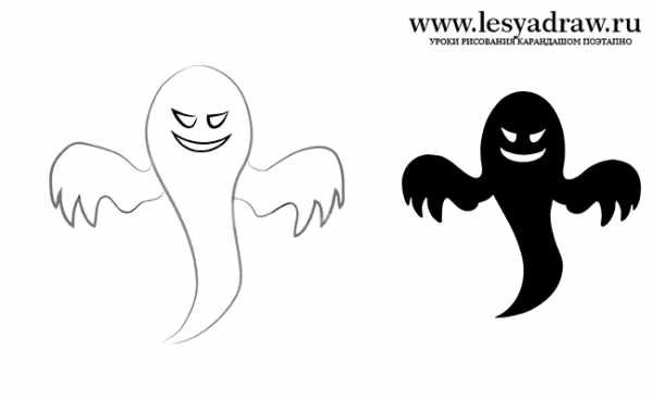 ![Рисунки на Хэллоуин для срисовки приведение]()