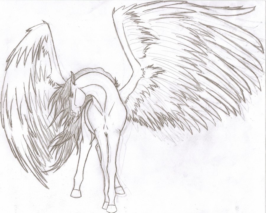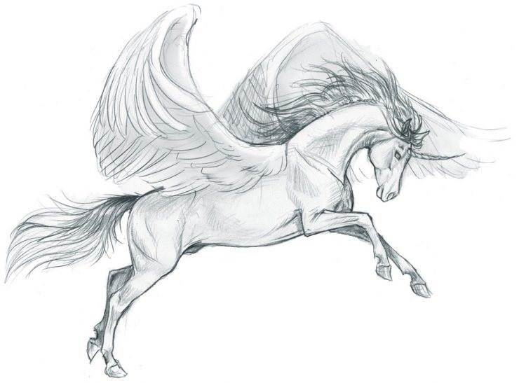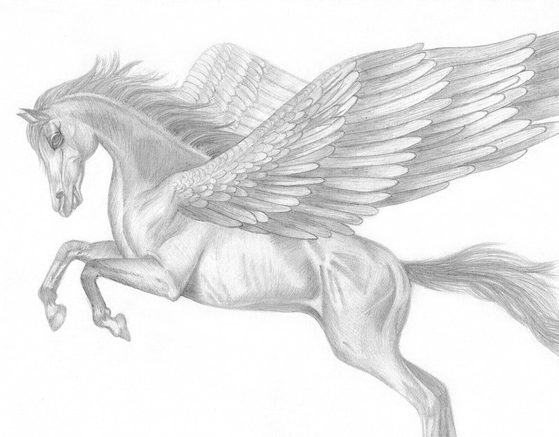 Рисунок карандашом лошадь с крыльями