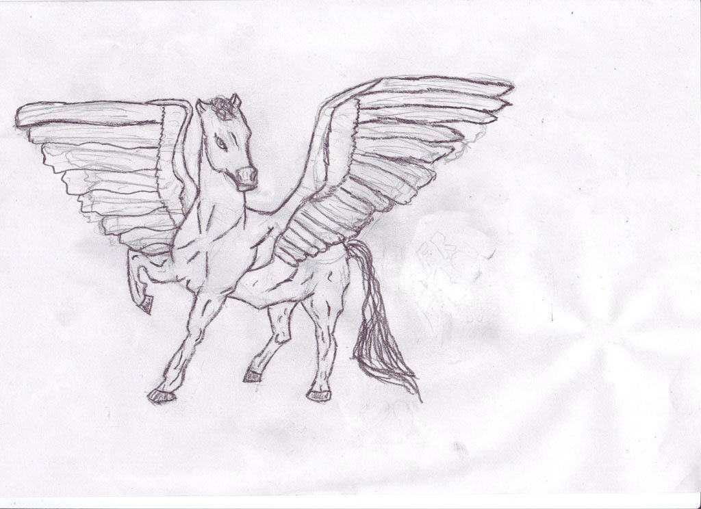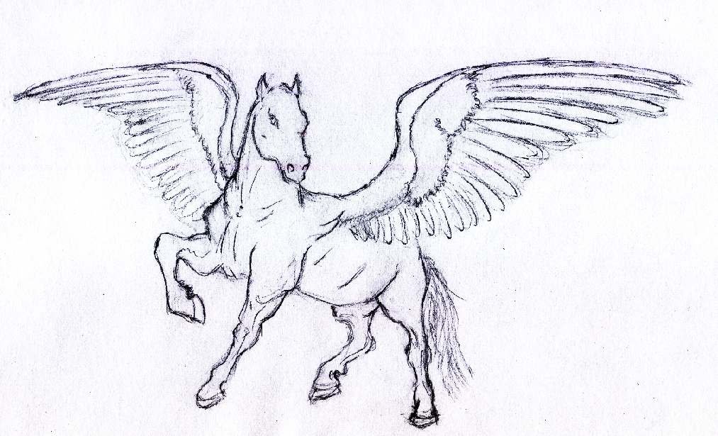 ![Лошадь с крыльями карандашом]()