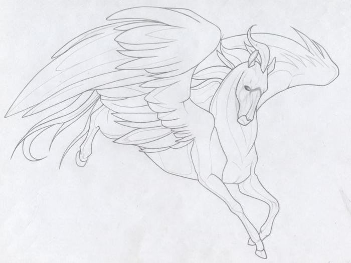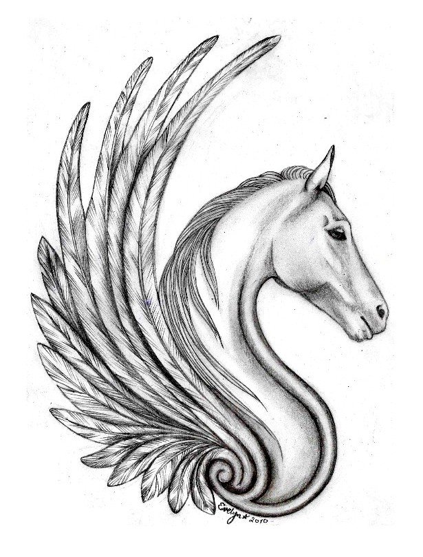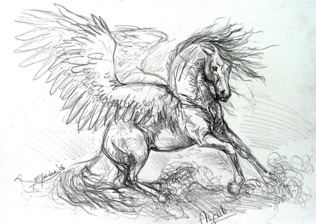 Лошадь с крыльями карандашом