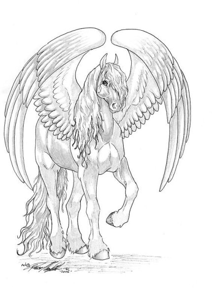 Лошадь с крыльями для срисовки