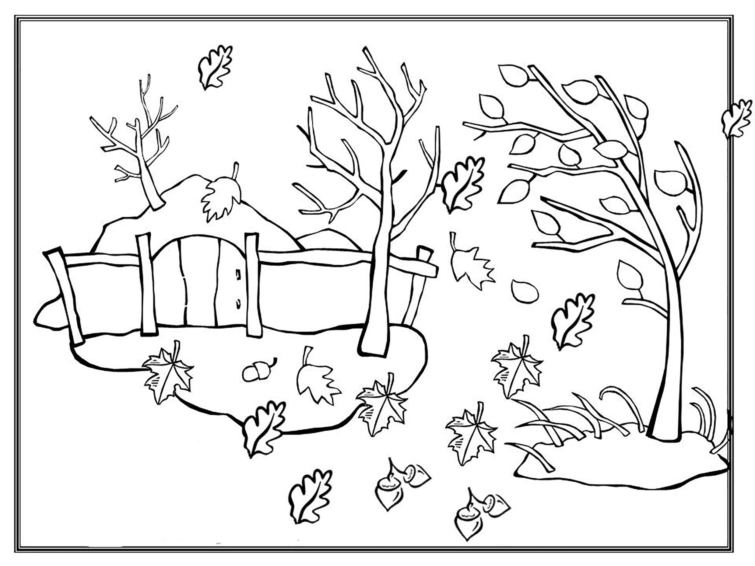 Осенний пейзаж раскраска