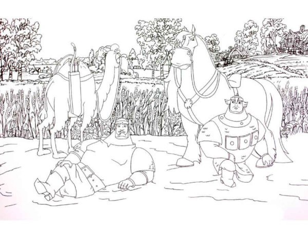 Илья Муромец и Святогор раскраска