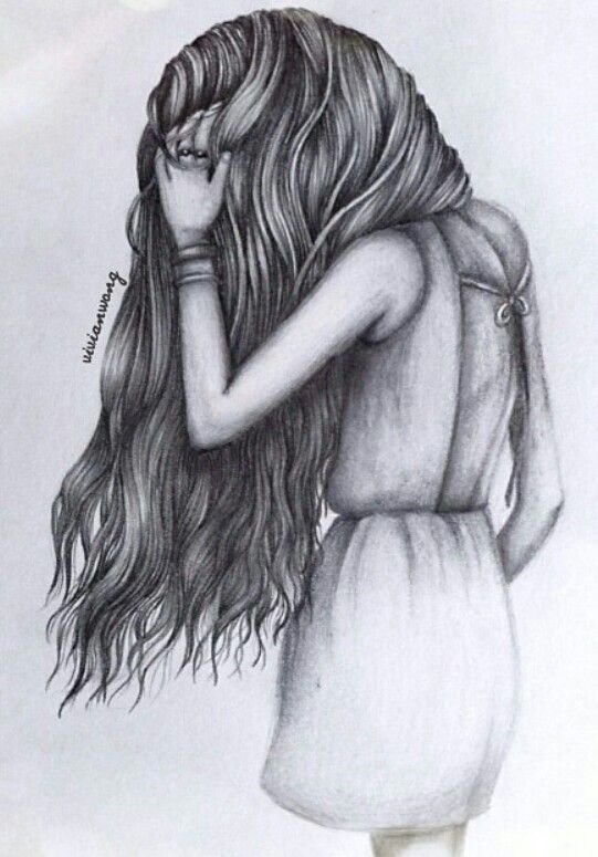 ![Девушка сзади с длинными волосами рисунок]()