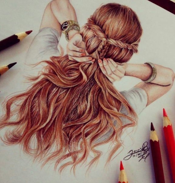 ![Длинные волосы карандашом]()