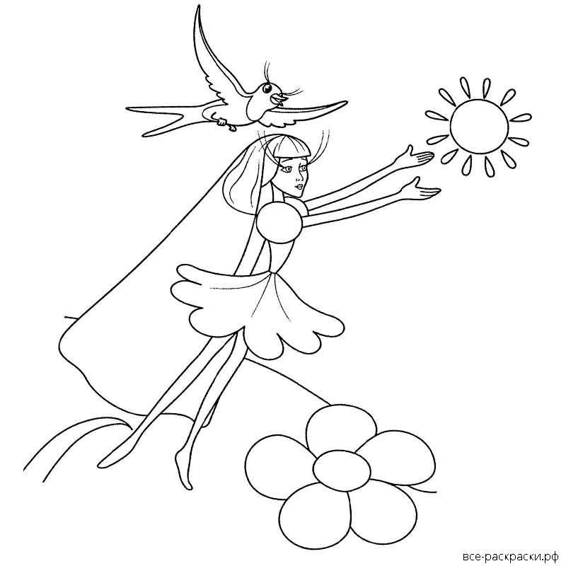 Дюймовочка раскраска