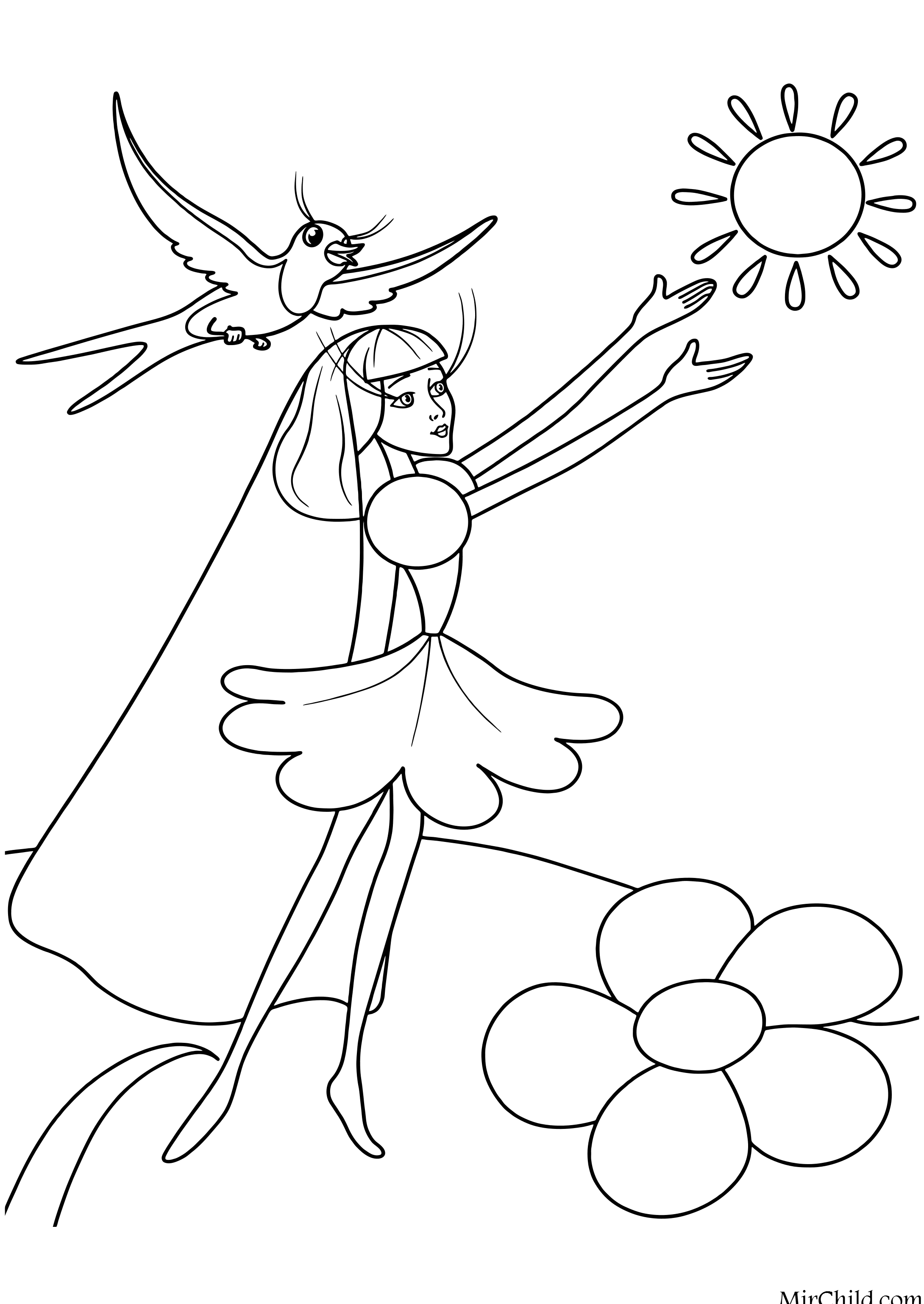 Раскраска к сказке Дюймовочка