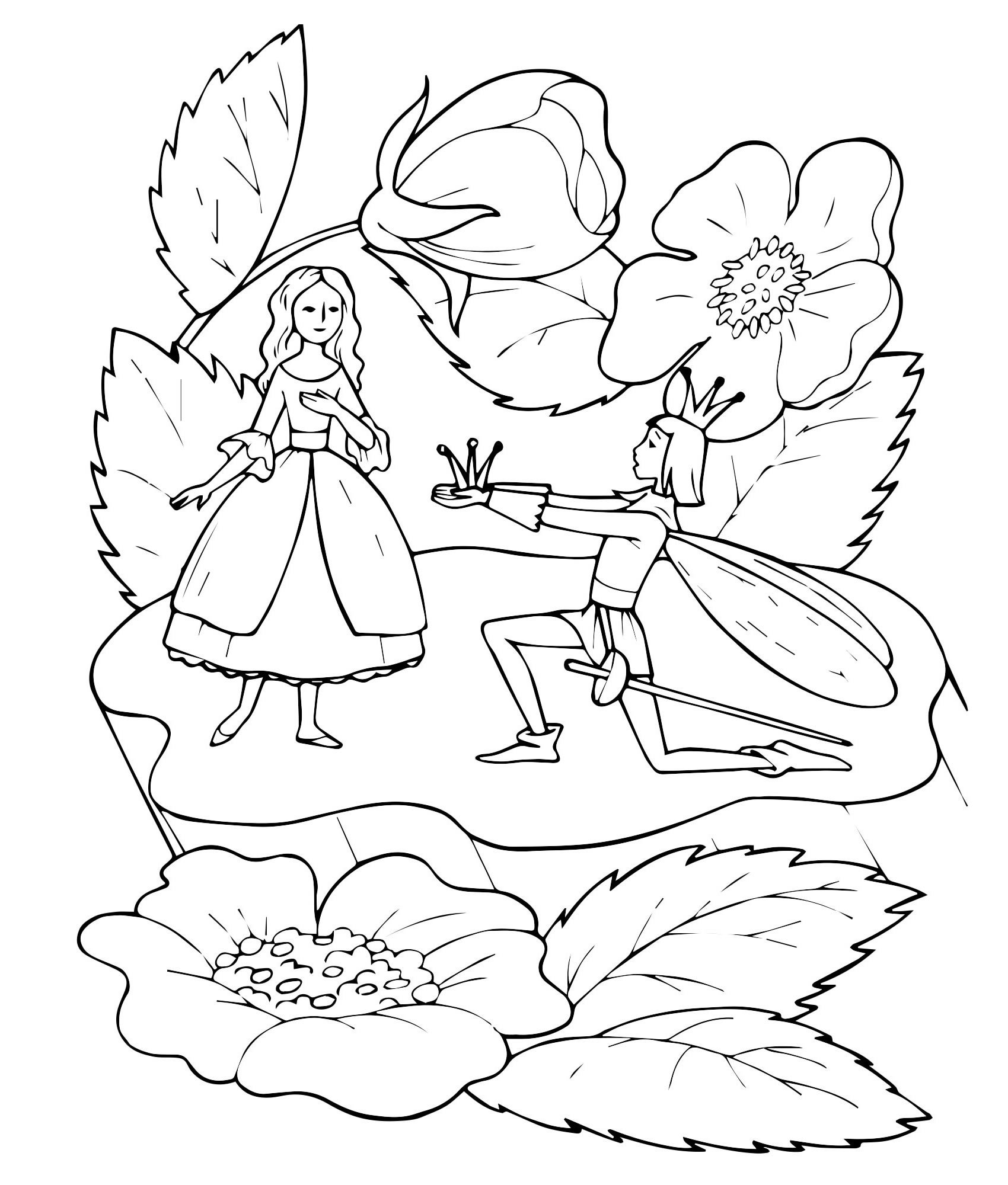 Раскраска к сказке Андерсена Дюймовочка