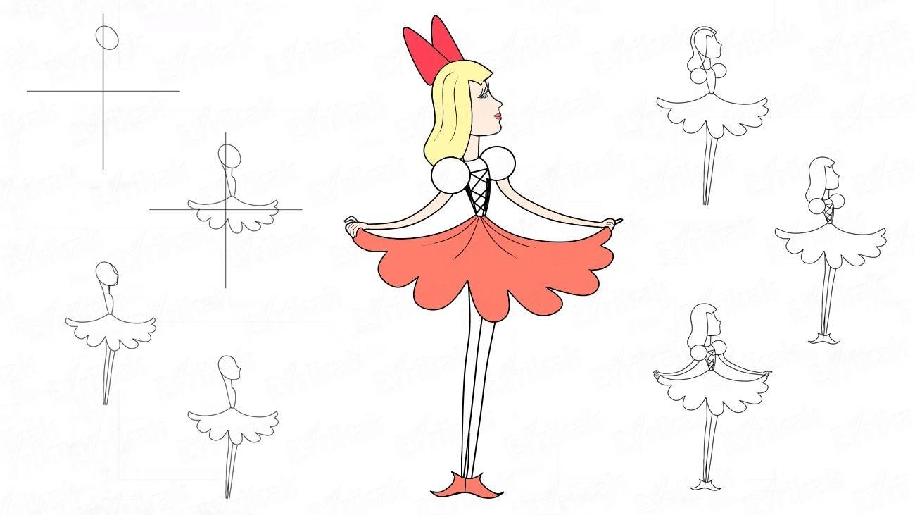Поэтапное рисование Дюймовочки