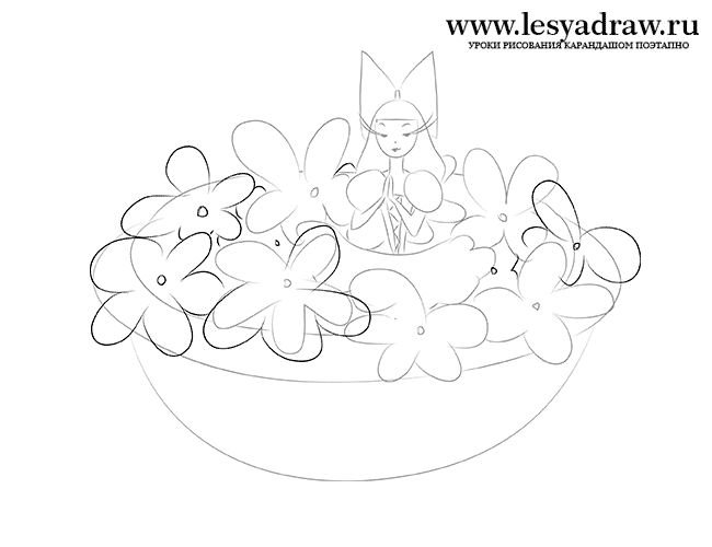 Поэтапный рисунок Дюймовочки