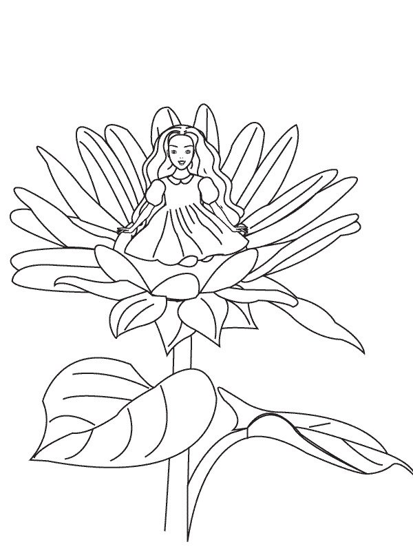 Раскраска Дюймовочка в цветке