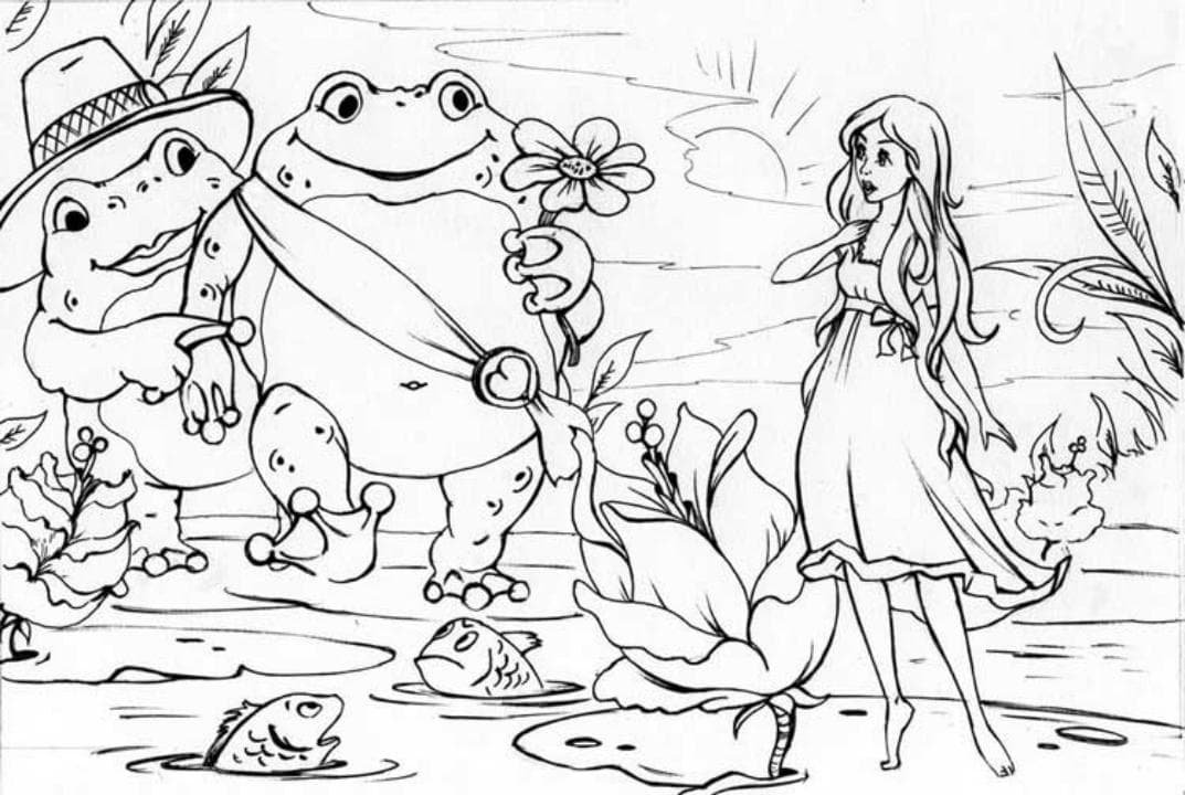 Раскраска к сказке Дюймовочка Ганс христиан Андерсен