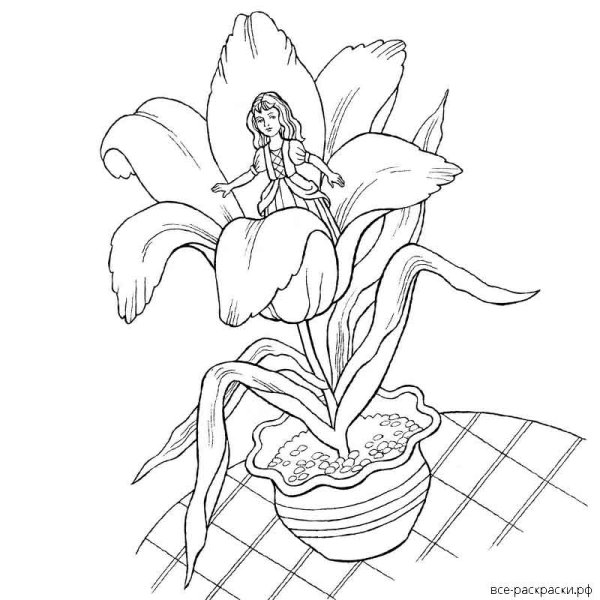 Дюймовочка картинки раскраски