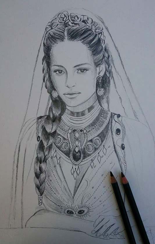 Портрет снежной королевы карандашом