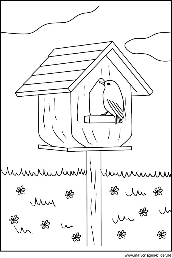 ![Скворечник для раскрашивания детям]()