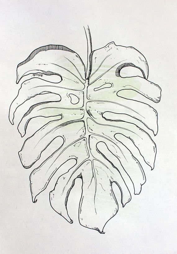 ![Лист монстеры эскиз]()