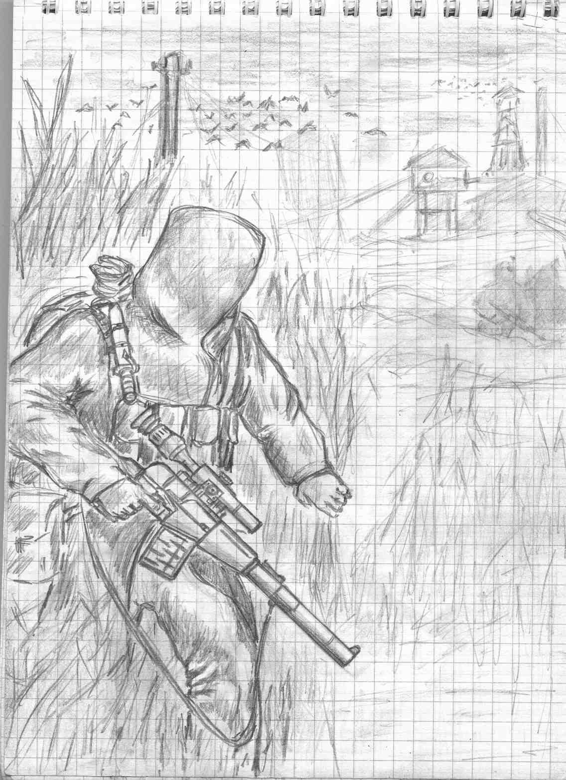 ![Сталкер Чернобыль рисунок карандашом]()