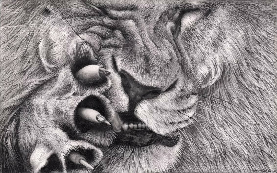 Лев карандашом