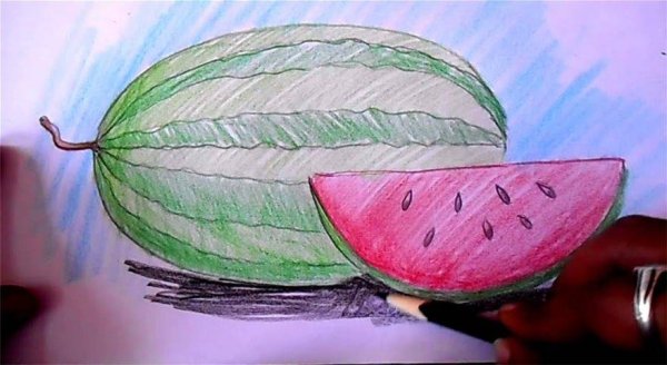 ![Арбуз рисунок для детей карандашом (48 фото)]()