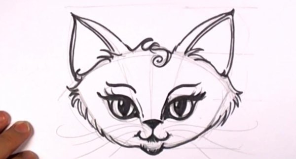 ![Рисование головы кошки]()
