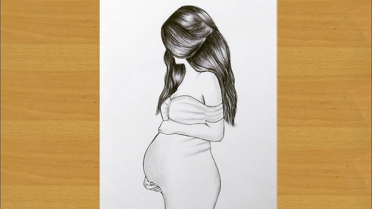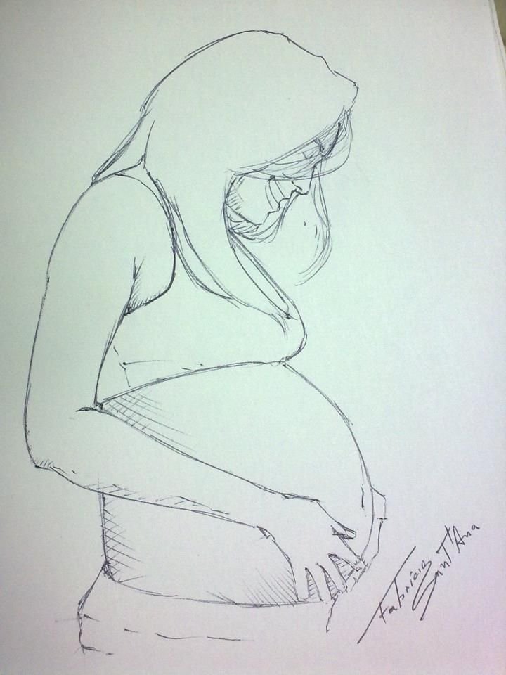 ![Беременная девушка рисунок карандашом]()