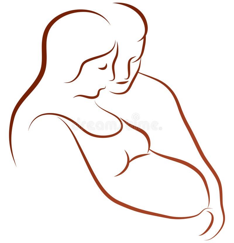![Беременная рисунок черно-белый]()