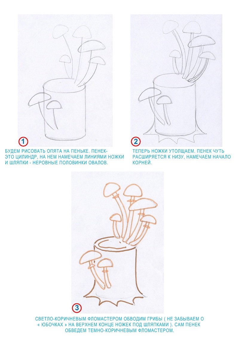 Пошаговый рисунок опят