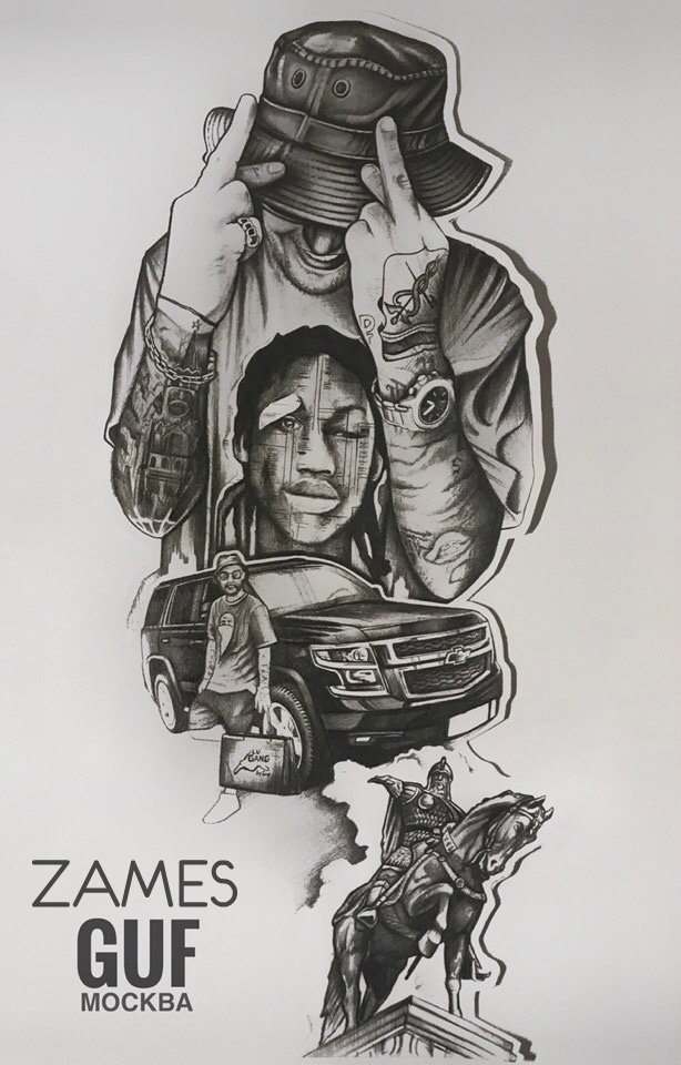 ![Тату Гуф эскиз]()