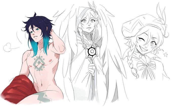 ![Венти Геншин Импакт скетч]()