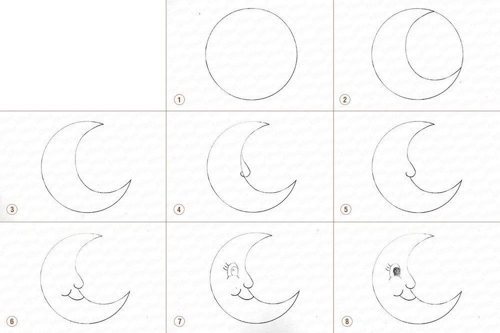 Нарисовать луну карандашом