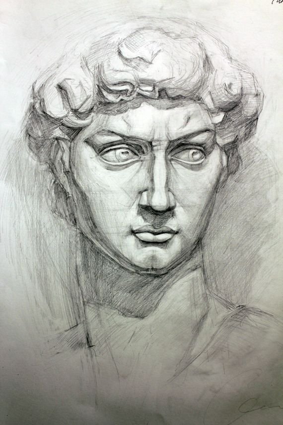 ![Гипсовая голова Давида Микеланджело эскиз]()