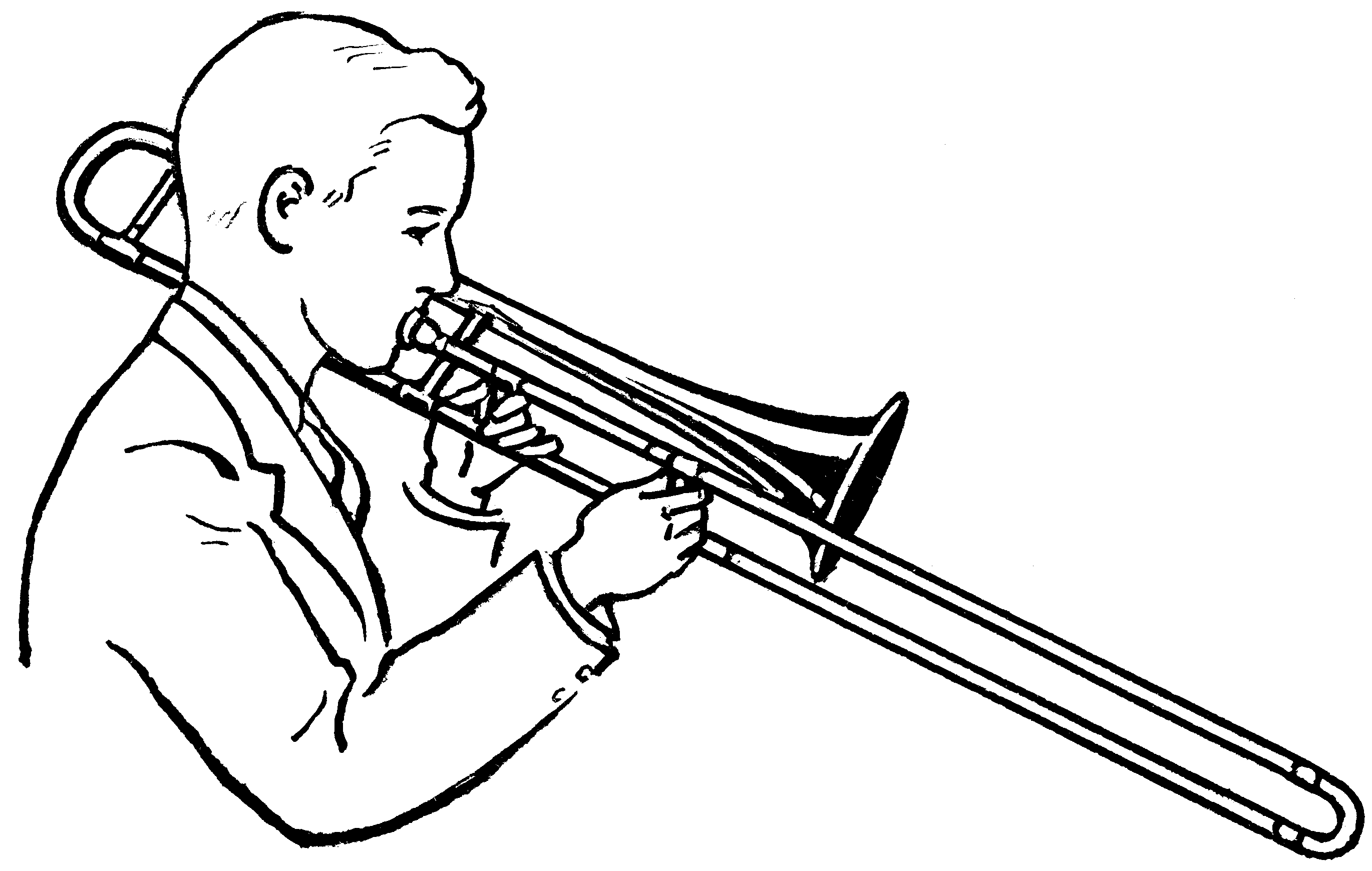 ![Тромбон духовой музыкальный инструмент рисунок]()