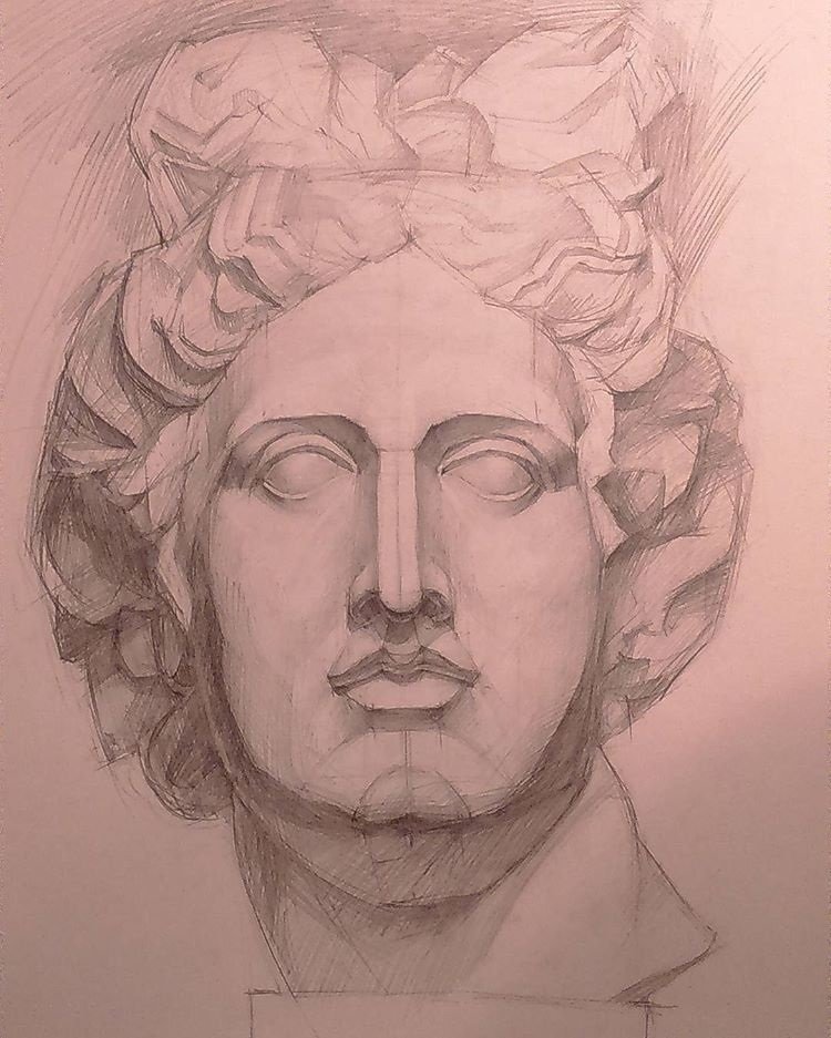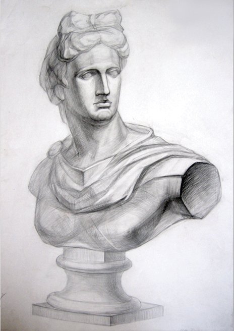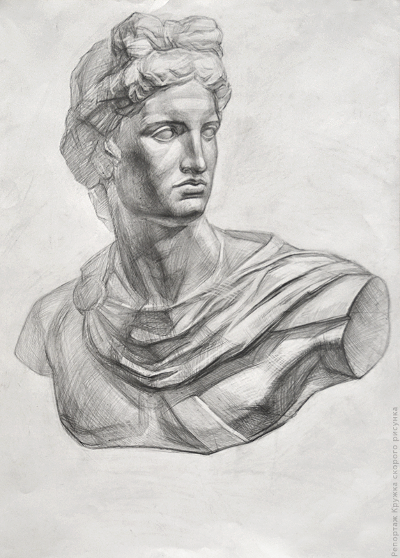 ![Гипсовая голова Аполлона Бельведерского рисунок]()