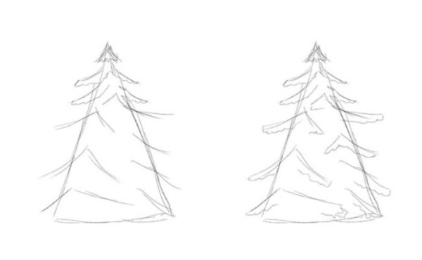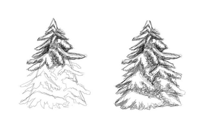 Рисование ели карандашом
