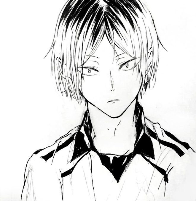 ![Кенма Козуме черно белый арт]()