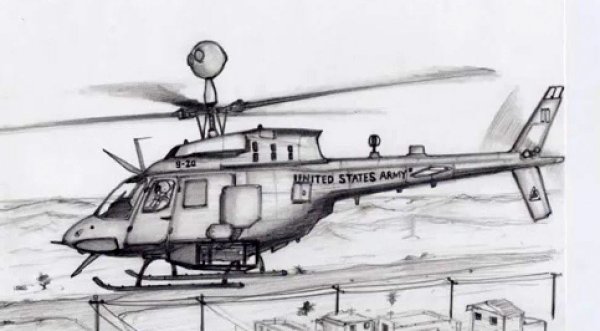 ![Военный вертолет карандашом]()