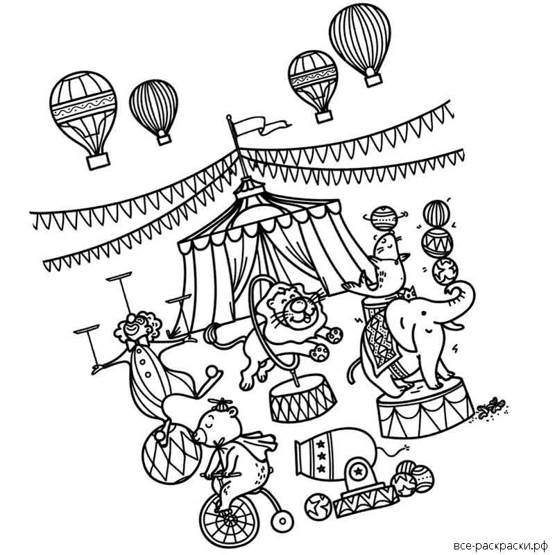 ![Цирк раскраска для детей]()