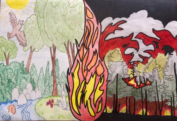 Лесной пожар страшное бедствие рисунок
