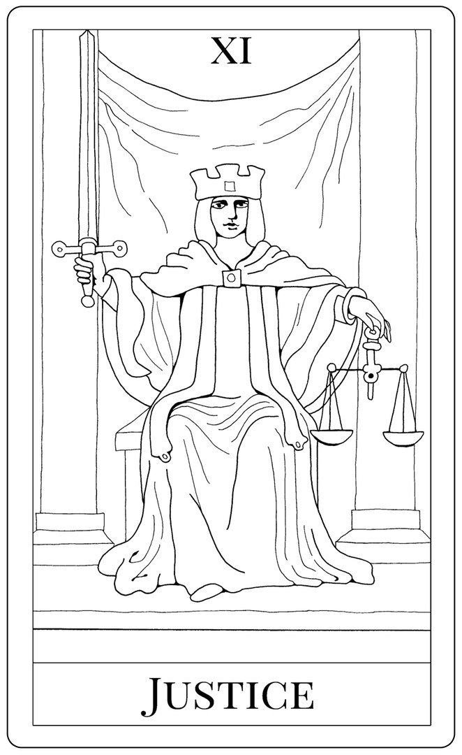 ![Правосудие Таро Уэйта]()
